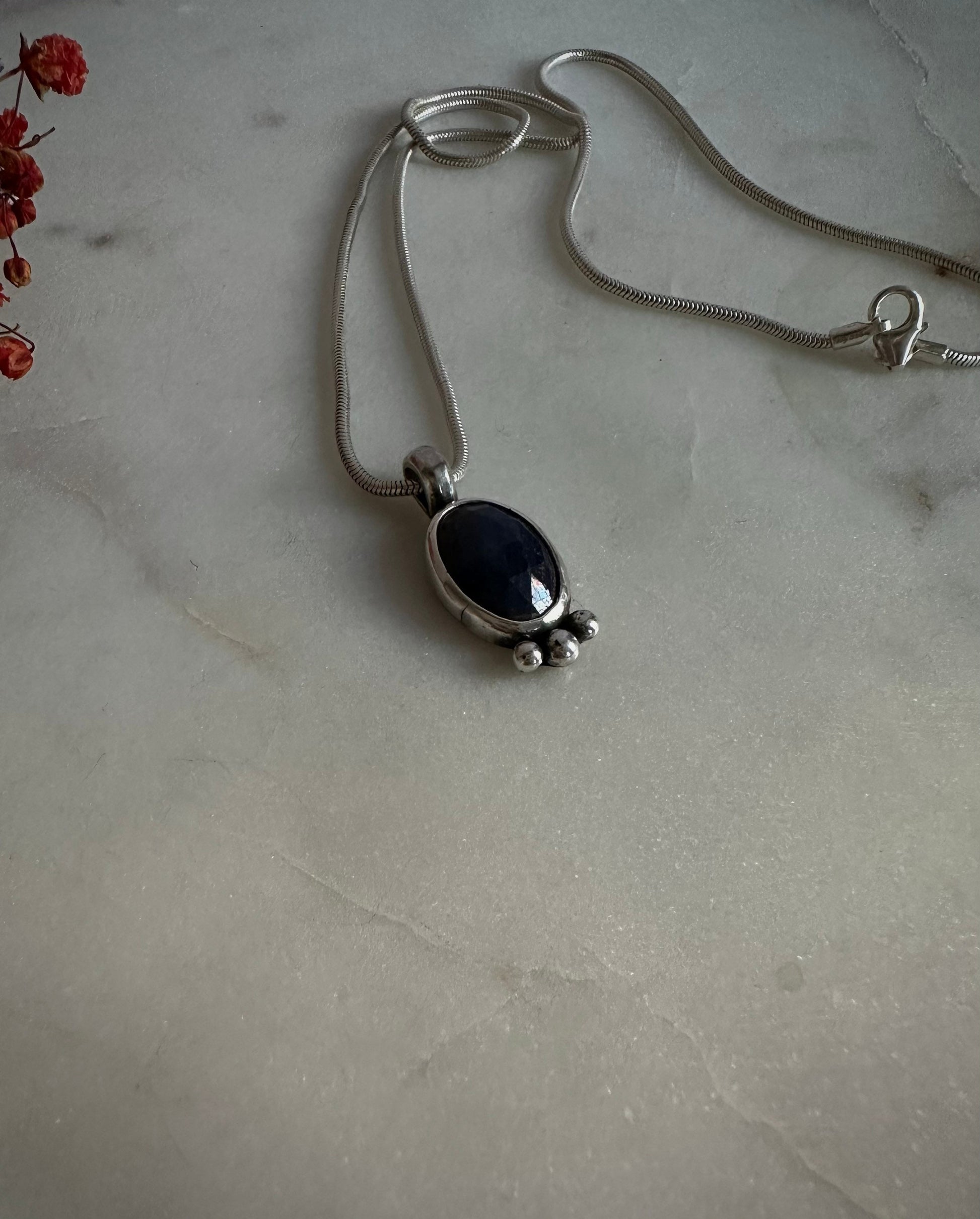 Rose cut lapis lazuli sterling silver necklace